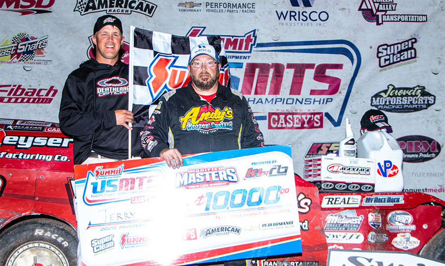 Terry Phillips celebrates in victory lane during the course of his 2020 campaign