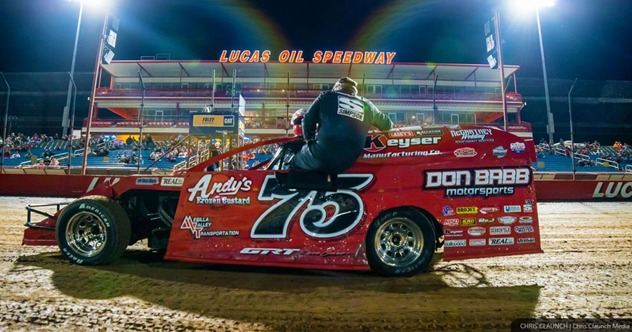 Terry Phillips celebrates in victory lane during the course of his 2020 campaign